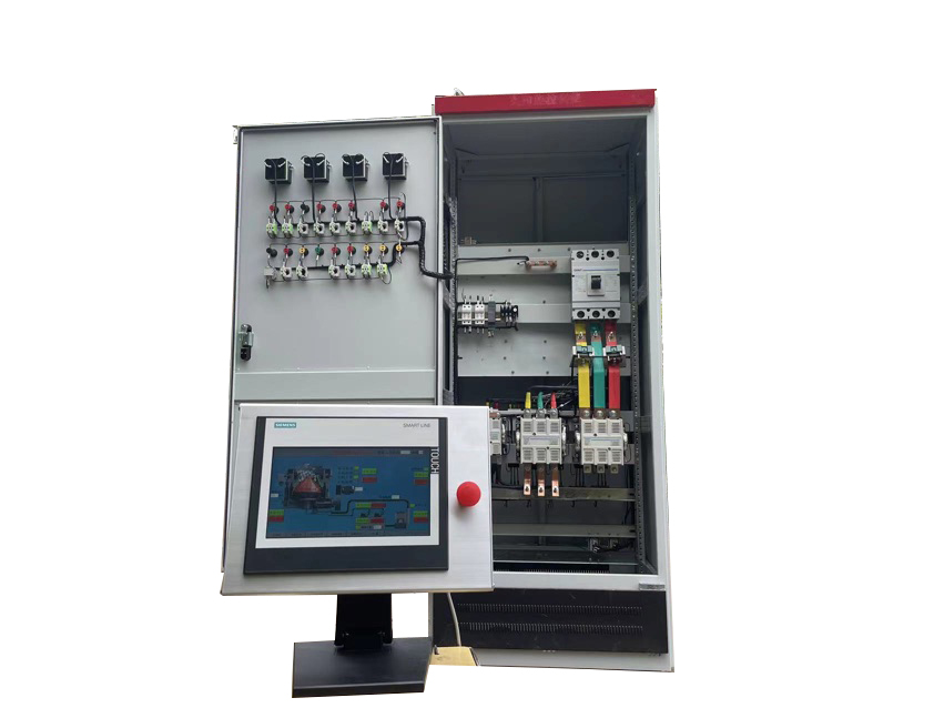 該控制柜采用西門子PLC控制;觸摸屏操作、控制、顯示為一體;具有一鍵啟動,智能化控制,電機的運行適時監控,各電機的相關關聯控制,真正做到了關聯控制、相互制約,顯示屏具備操作功能;顯示電壓、電機電流,工作狀態參數、故障報警、自動停機等功能。